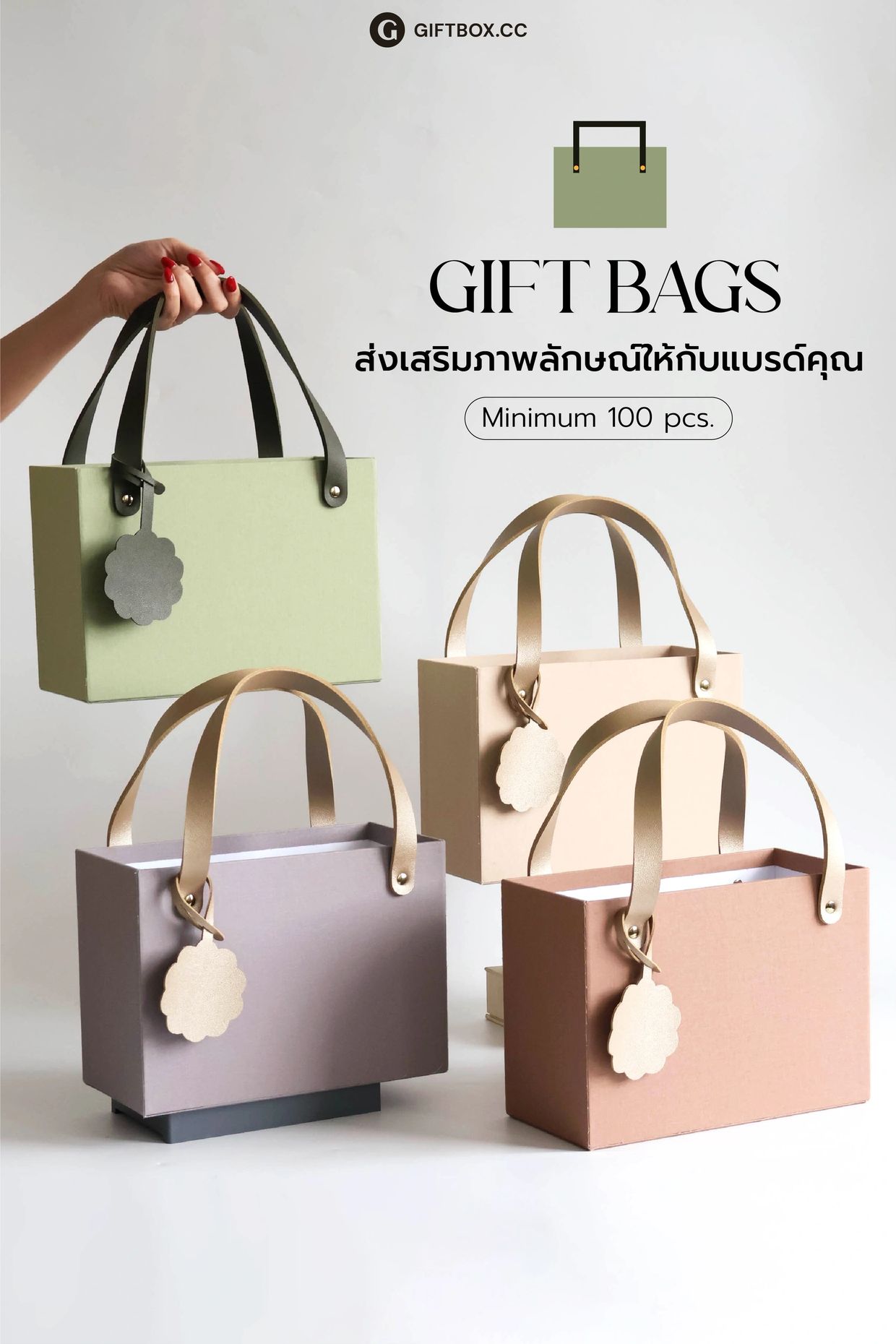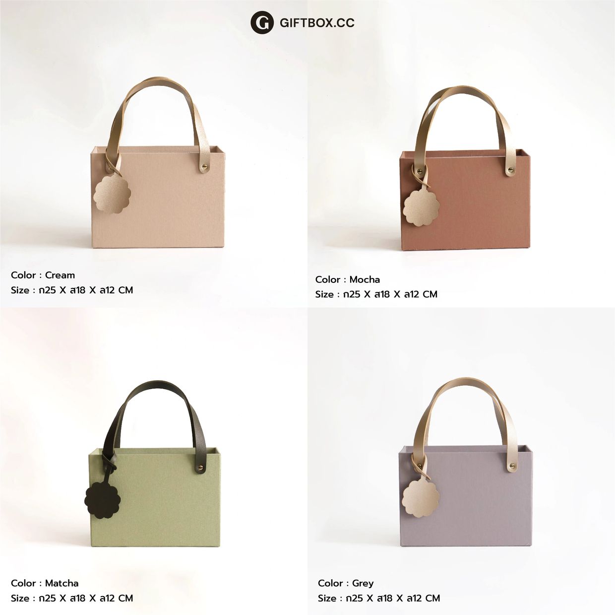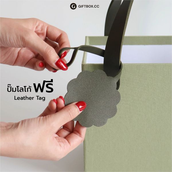กระเช้าดีไซน์เรียบ แต่ดูดีด้วย วัสดุผ้าสะวันนา และป้ายแท็กปั๊มโลโก้แบรนด์คุณ