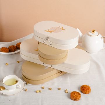 กล่องจั่วปัง รูปแบบลิ้นชักติดแม่เหล็ก พร้อมหูหิ้วหนัง กล่องสำหรับใส่จานเซรามิก